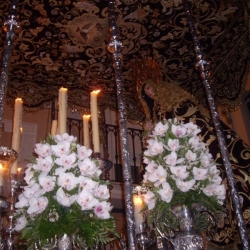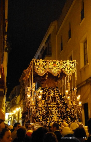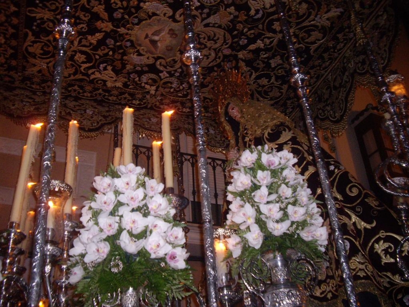 Como también lo han hecho por la noche en que la Virgen del Socorro ha lucido espléndida por nuestras calles, bajo su magnífico palio y con un exquisito adorno floral. Acompañada de los sones de la Banda de Música de Cabra que ha interpretado un selecto repertorio en el que no ha faltado la clásica marcha del Maestro Rodríguez "Virgen del Socorro" formando un todo con los costaleros.