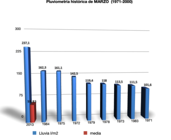 Una vez finalizado este mes de marzo, podemos decir que ha sido el más lluvioso con diferencia desde que se tienen registros históricos.