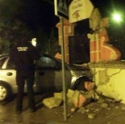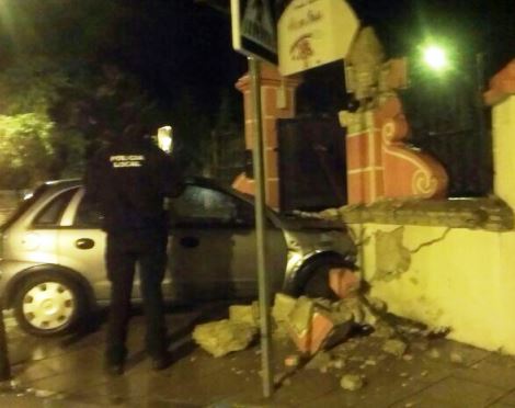 Afortunadamente no hay que lamentar daños personales del propio conductor del vehículo ni a terceros tras el "empotramiento" que un vehículo Opel Corsa ha realizado en la misma puerta de la conocida Guardería "Arco Iris".