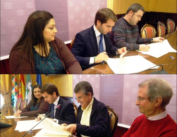 Igualmente se procedía a la firma del Convenio de Colaboración entre el Ayuntamiento de Cabra y la Asociación Instructivo Musical Banda de Música de Cabra. Un convenio que contempla una contraprestación de 36.000 euros por las distintas actuaciones entre las que se contemplan el Concierto del Día de Andalucía, la Procesión de San Rodrigo, el Pregón de Semana Santa, el Concierto Homenaje a la Semana Santa, la Procesión del Santo Sepulcro, el Concierto de las Fiestas del Cerro, Procesión del Corpus, Concierto-Homenaje a Juan Valera, Corrida de Toros, Pregón de Septiembre, Entrada de la Virgen de la Sierra en Cabra el día 4 de septiembre, Concierto de Septiembre, Diana y Procesión el día 8 de Septiembre, Concierto de Despedida, Subida de la Virgen, Día de Santa Cecilia, Día de la Constitución o Concierto de Fin de Año o Año Nuevo según las necesidades de la Programación.