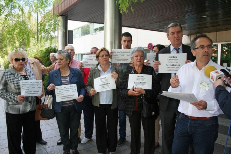 El Sindicato de Enfermería SATSE junto a enfermos de Cuidados Paliativos atendidos en el Hospital Infanta Margarita han llevado a cabo una protesta a las puertas del Centro Hospitalario egabrense denunciando los recortes a los que se ven sometidos estos usuarios que necesitan de este servicio y que no disfrutan al 100% ya que las prestaciones son llevadas a cabo por un médico que está contratado al 75%, no existe enfermera a la par que el servicio de Psicología está prestado por una facultativa perteneciente a la Asociación Lucentina contra el Cáncer.
