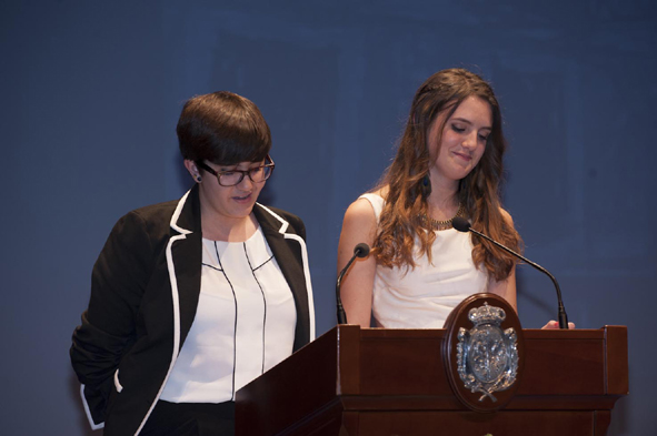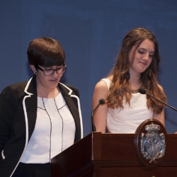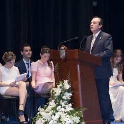 En nombre del Claustro de Profesores, intervendría la profesora Inmaculada Jiménez Torralbo quien realizó un motivador discurso sobre las posibilidades de formación académica y profesional que se les abren a los alumnos y alumnas que se gradúan, haciéndoles ver que todos y cada uno de ellos tiene un potencial que deben descubrir y desarrollar sin caer en el desánimo de estos tiempos difíciles.