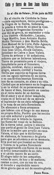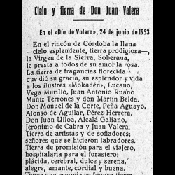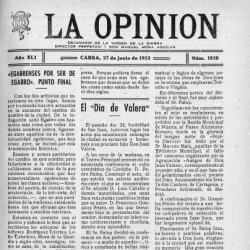 En las imágenes que ilustran esta noticia, incluimos la portada de La Opinión del 27 de junio de 1953 con la crónica del Día de Valera de hace cincuenta años, así como unos versos de Juan Soca publicados también en La Opinión hace medio siglo.