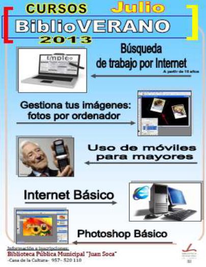 La experiencia cuenta con dos apartados, el primero dedicado a la informática y el segundo a la animación de la lectura. Los cursos de informática, a celebrar durante Julio, diseñados para todos los públicos, irán desde la búsqueda de trabajo por internet a la gestión de imágenes fotos por ordenador, el uso de móviles para mayores, internet básico y photoshop básico