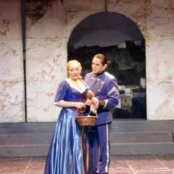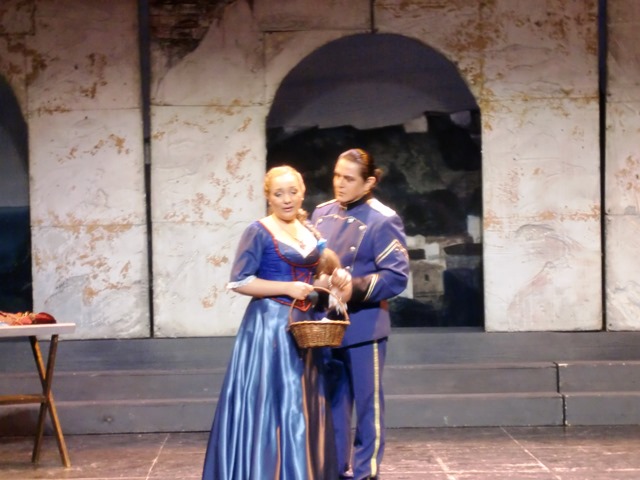 Anastasiya Golub, soprano ucraniana de Kiev, primera solista de la Ópera de Odessa, se encargó en el Teatro "El Jardinito" de confirmar lo dicho anteriormente por E. Franco y así nos entusiasmó con sus dos intevenciones, el aria del 1er. acto que termina en dúo con Don José y el aria de lucimiento "Je dis que rien ..." (Digo que nada me asusta...) en el que los bravos no se hicieron esperar, tras la última nota musical. Magnífica su actuación, con voz potente y qué agudos, que además hizo doblete, interpretando también a la