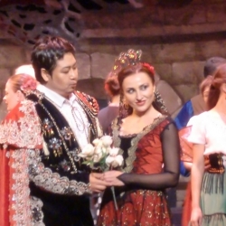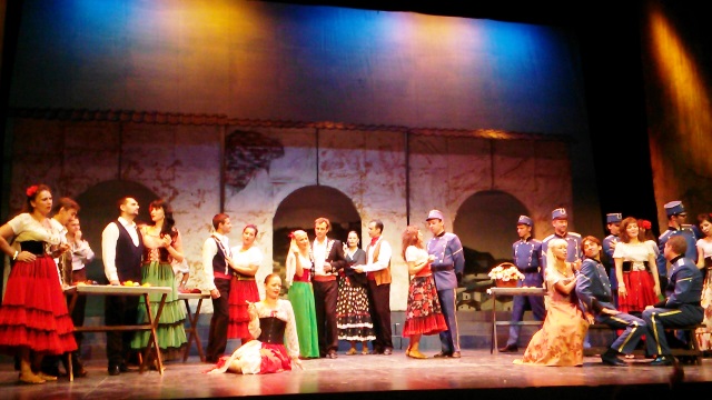 Llamó la atención la aparición de un barítono coreano, Don Kyu Oh, en el papel del torero Escamillo. Es cierto que de esta nacionalidad están "invadiendo" los escenarios europeos cantantes masculinos con buenas voces. Ha ganado varios premios entre ellos un "Francisco Viñas" 2013 y contrato de trabajo con L.G. Opera Management, ofrecido por Leonor Gago, Directora de Concerlírica Internacional. Su voz baritonal recia hizo un aria "Del Toreador" del 2º acto que impresionó al público.