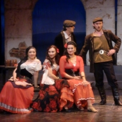 Los contrabandistas Dancairo (Yuri Dudar, barítono, de la O. de Odessa) y Remendado (Kostyantyn Bocharov, tenor de la Donbass) y las gitanas Frasquita (Anastasiya Golub, soprano) y Mercedes (Anna Popova, mezzo, de la Donbass) hicieron con Carmen, juntos, el famoso quinteto preparador del "golpe de contrabando" espléndidamente y fue muy aplaudido. También las dos gitanas se lucieron en el dúo de "las cartas", demostrando su gran categoría.