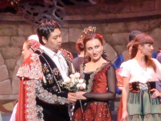 Una vez más, ya la misma obertura ha puesto de manifiesto la excelente acústica del Teatro y como el sonido que salía del foso se escuchaba perfecto en toda la sala. La Orquesta Sinfónica de la Ópera de Donbass, compuesta por medio centenar de músicos, estaba muy completa y sonó bien. El arpa era un arpa, no un sucedáneo, había dos fagotes, etc. o sea una orquesta muy digna.