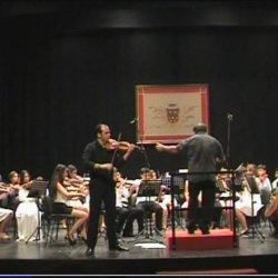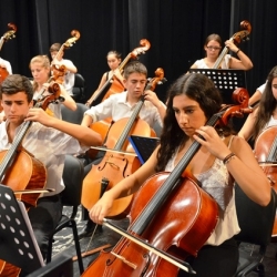 Siguió la ORQUESTA -B- "NATURALEZA" para los más mayorcitos, que tuvo la batuta de Ángel Andrés Muñoz Márquez, con música más clásica, empezando con la obra barroca "Abdelazer" (Obertura y Rondó) de Henry Purcell que sonó espléndida en las manos de Ángel Andrés. "Forest Gump" (Alan Silvestri). "Star Wars" (La guerra de las galaxias)-Tema de la Princesa Leia- (J. Williams) con un solista de lujo, Ángel Moreno Millán al violín. "Harry Potter" (J. Williams). Qué buen director es Ángel Andrés, aparte de su faceta de gran pianista. Y como colofón "Over the Rainbow" (Yip Harburg/Harod Arlen) en la que los alumnos que conformaban la orquesta tuvieron la oportunidad de acompañar a una solista vocal, la soprano-violinista Ana Mª Moya, muy elegante en su atuendo, que hizo una exhibición sobre todo en la tesitura alta.