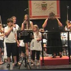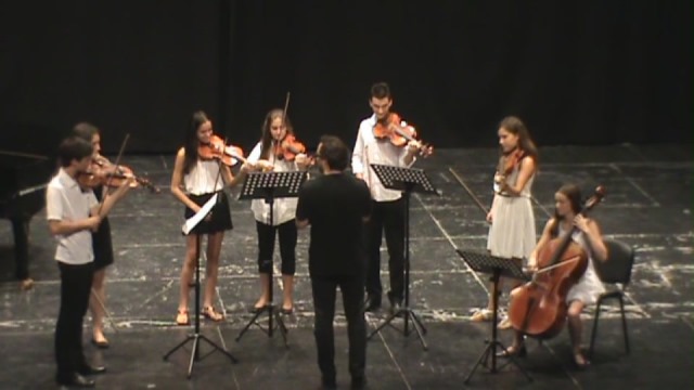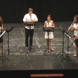 Desfilaron primero por el escenario, alumn@s formando varios DÚOS, de diferentes instrumentos con piano, desde los chic@s más pequeños a los de Enseñanzas Profesionales, y así oímos a Schubert, Shostakovich, Purcell, Beethoven, Clerisse, Farkas, Piazzolla, Saint-Säens, Schumann y Elgar, en obritas cortas para no hacer muy extenso el recital. Dos TRÍOS con Haendel y Fabe, un CUARTETO con un "Divertimento" de Mozart, un SEXTETO con "Caprice" de Grundman y por último un SEPTETO que hizo música de The Beatles (Michelle).