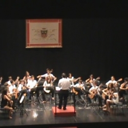Una ORQUESTA DE GUITARRAS formada por 25 guitarristas hizo obras de Leo Brouwer, Pujol y Farrés y sonó conjuntada bajo la batuta del profesor de la especialidad Juan A. Carrillo. Es de mérito conseguir en pocos días esta conjunción.