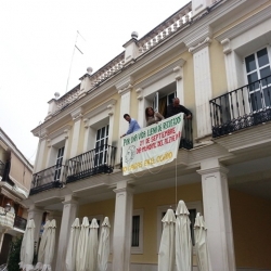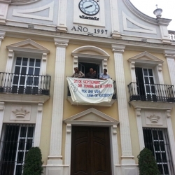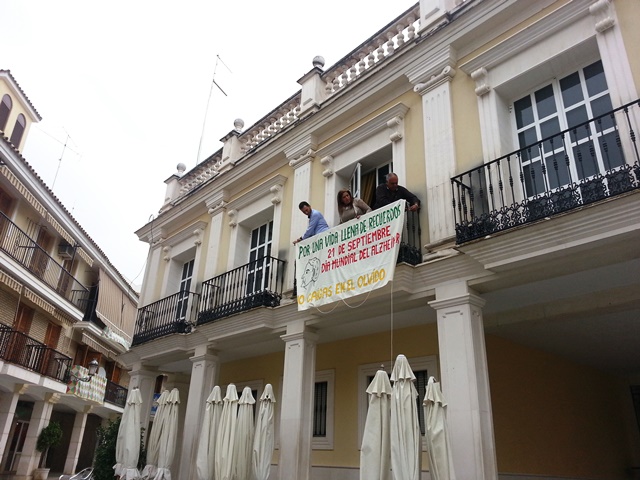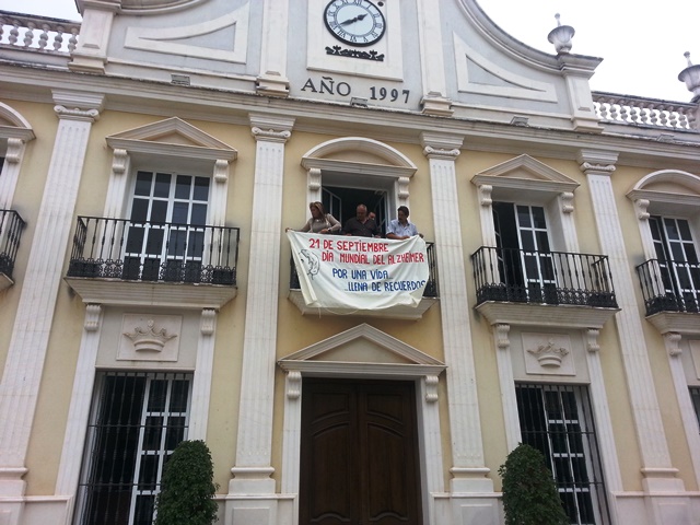 Durante el acto, un usuario leyó un emotivo poema relacionado con el Alzheimer y al finalizar, se colocaron las pancartas en dos balcones de la Casa Consistorial Egabrense.