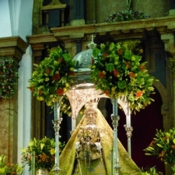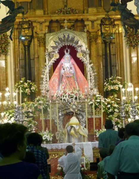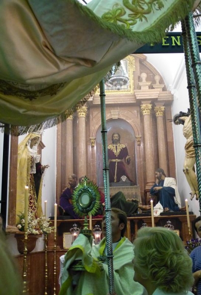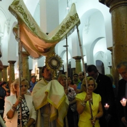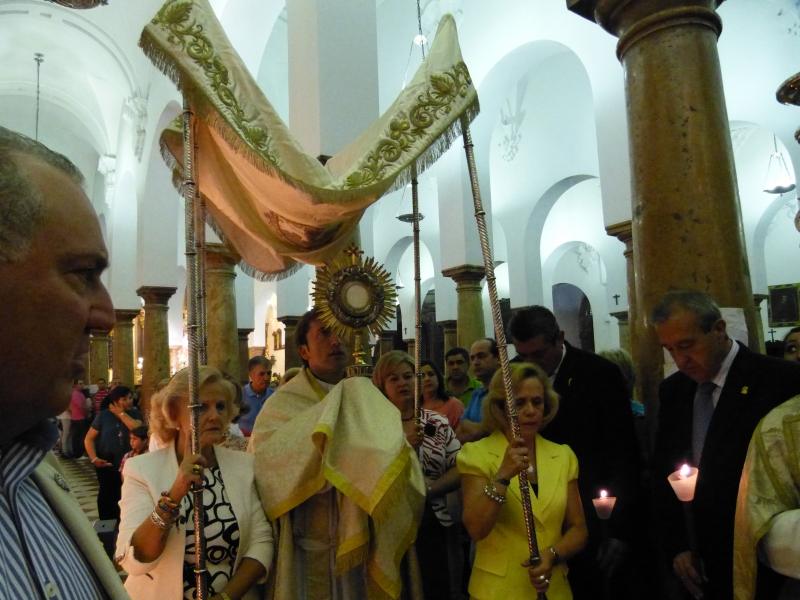En la noche del viernes, tras la celebración que ofrecía la Hermandad de San Rodrigo - costaleros de la Virgen de la Sierra -, tenía lugar la solemne procesión claustral con el Santísimo que culmina los cultos ofrecidos durante la estancia de la Virgen en la Parroquia.