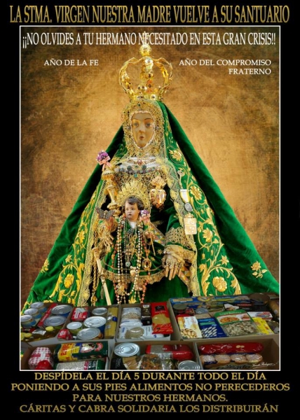 Para este sábado, por parte de la Archicofradía, se ha organizado una colecta de alimentos para Cáritas y Cabra Solidaria, al mismo tiempo que se realizará una colecta especial con los mismos fines. Ya por la tarde, dentro de los cultos de esta víspera de la Subida de la Virgen de la Sierra a su Santuario, tendrá lugar el tradicional Rosario de despedida, cantado por el Centro Filarmónico Egabrense, con el acompañamiento de Rafael Sabariego Padillo, al órgano barroco de la Asunción. También está prevista la bendición de una imagen de San Agustín, realizado por José Antonio Cabello, que se ubicará en la iglesia del Santuario.