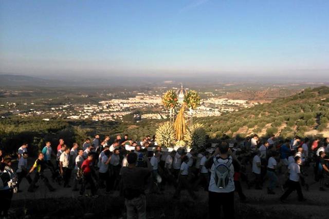 Tras el paso de la Virgen por los miradores y entre un gentío de fieles, romeros, costaleros y devotos, la Virgen de la Sierra, sin dar la espalda a su pueblo, atravesaba la puerta de Piedra del Santuario para ser colocada en el Altar Mayor y celebrarse después la Eucaristía oficiada por el Rector del Santuario, Zacarías Romero.