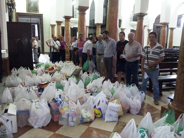 En un acto sencillo pero cargado de intensidad se ha desarrollado esta tarde el reparto de los más de 3.000 kilos de comida y 1.100 euros en metálico entre las cuatro delegaciones parroquiales de Cáritas en nuestra Ciudad así como la Asociación "Cabra Solidaria" del resultado obtenido en la campaña que, por segundo año consecutivo, ha puesto en marcha la Real Archicofradía de María Stma. De la Sierra, Patrona de la Ciudad y que bajo el lema "Año de la Fe, Año de la Solidaridad" se llevó a cabo el pasado sábado 5 de octubre, víspera de la Subida de la Patrona a su Santuario.