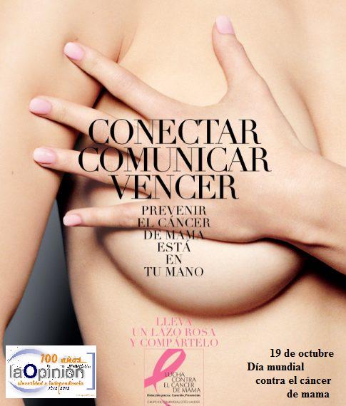 La Asociación Española Contra el Cáncer, con motivo del Día contra el cáncer de mama, pone en marcha una campaña de sensibilización e información sobre esta enfermedad. Entre los objetivos, está informar a las mujeres mayores de 40 años sobre los aspectos más relevantes del cáncer de mama. No se puede olvidar la elevada incidencia del cáncer de mama entre la población femenina: una de cada 8 mujeres desarrollará un cáncer de mama a lo largo de su vida.