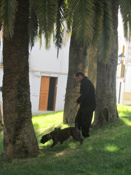 Los asistentes a las jornadas se trasladaron al palmeral de la plaza Vieja para presenciar unas demostraciones prácticas sobre algunas técnicas empleadas en distintos municipios de la costa malagueña, donde la plaga ha causado verdaderos estragos y la tasa de mortalidad de las palmeras asciende a miles. Entre una de las técnicas más novedosas, se encuentra el uso de perros adiestrados que detectan rápidamente la presencia de picudo hasta tres metros de altura, una técnica muy útil para casos en los que las larvas se encuentran en la zona de la base del tronco y cuando la plaga ha entrado a nivel de las raíces, como así ha sucedido en algunos casos concretos de palmeras datileras en la costa, aunque no es lo más frecuente.