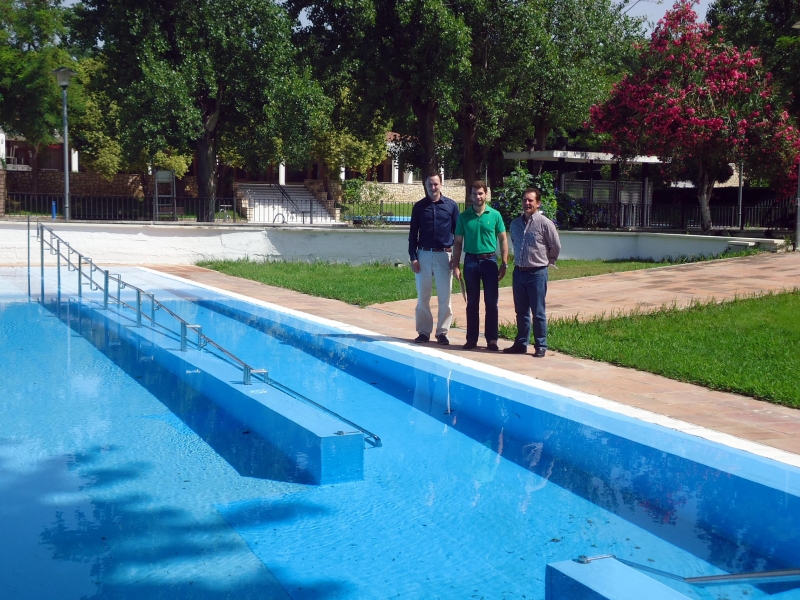 El Alcalde de Cabra, Fernando Priego (PP) junto a los Delegados de Turismo y Obras y Servicios, Francisco Casas (PP) y Juan Ramón Pérez (PP) visitaban en la mañana del pasado viernes las instalaciones deportivas del Parque "Heliodoro Martín" para conocer de primera mano como han quedado 24 horas antes de su puesta en marcha de cara a la temporada de verano.