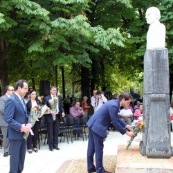 Como cada 24 de junio, jornada festiva en Cabra, el Ayuntamiento y la Fundación Valera han celebrado un homenaje a la memoria del escritor en la glorieta dedicada al autor en el Parque Alcántara Romero. El mal tiempo ha obligado a acelerar la fase final del acto.