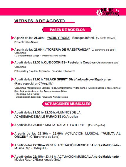 Un extenso programa conformado por pases de modelos de distintos tipos y edades, música en vivo y otras actividades hacen que los egabrenses y vecinos de la comarca disfruten de una manera "diferente" de salir de compras en verano cuando las temperaturas son "algo" más bajas aprovechando además los descuentos que los propios comerciantes ofrecen a los consumidores estos dos días de duración del evento.