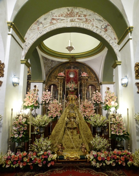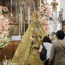 Tras un sábado de septiembre cargado de devoción mariana en torno a la imagen de Nuestra Señora de la Sierra, el Barrio del Cerro acoge hasta el 1 de octubre la estancia de nuestra Patrona en los muros de la vieja Iglesia de San Juan Bautista. Durante toda la jornada de este domingo 28 de septiembre, la Virgen de la Sierra recibe el testimonio de todo su pueblo y de los miles de devotos que, a lo largo del día se acercarán hasta sus plantas. El besamanos se iniciaba a las 8 de la mañana y estará hasta las 11 de la noche.