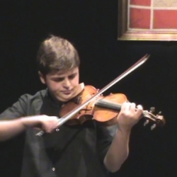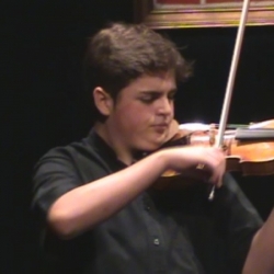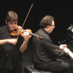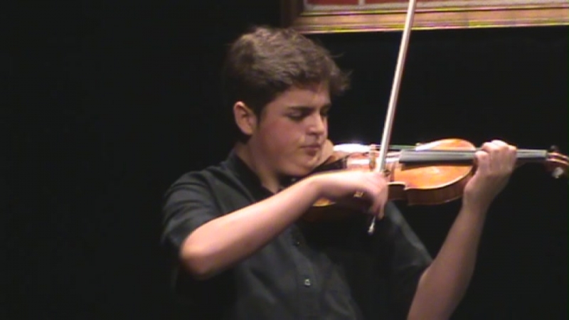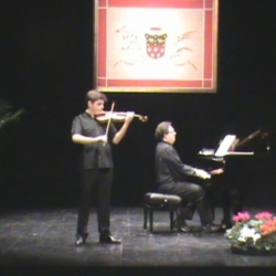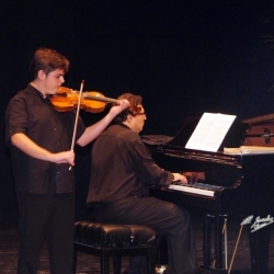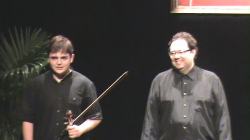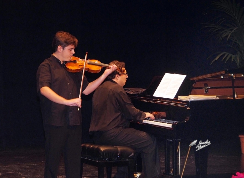 Los asistentes estaban eufóricos con lo que estaba escuchando y el remate vino con "Introducción y Tarantela Op. 43" de P. Sarasate (1844-1908). Sarasate siempre despierta en el público algo así a como se dice en el circo, "más difícil todavía", y Carlos dejó al respetable asombrado con su interpretación haciendo filigranas con el violín, trinos, coloraturas, armónicos, pizzicatos...El público puesto en pie aplaudió "a rabiar" a ambos intérpretes, y se sentó otra vez Arnold W. al piano y Carlos se colocó el violín y nos dieron un bis que sonó "a gloria", el 3er mov. "Scherzo.Allegro" de la "Sonata" de Beethoven que habían hecho en la primera parte, con el que terminó la espléndida noche musical del Teatro "El Jardinito". El público salió satisfechísimo y los padres de Carlos recibieron los plácemes de los asistentes, por la actuación de su hijo Carlos.