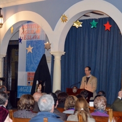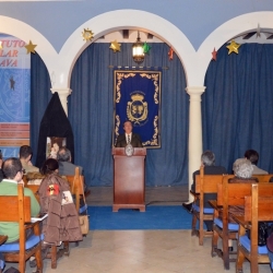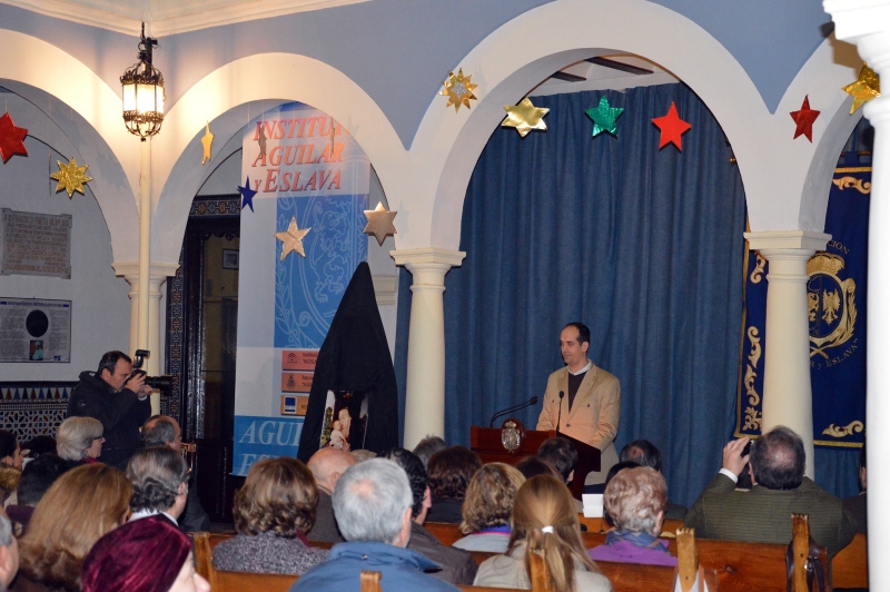 El director del centro educativo, Francisco Ortiz, saludó a los presentes y felicitó al autor y amigo, patrono de la Fundación Aguilar y Eslava desde hace 16 años y a su presentador, un antiguo y brillante alumno de la casa. A continuación el Presidente de la Fundación, Salvador Guzmán, hizo un somero balance de las actividades de la institución y su museo a lo largo del año que termina, para responsabilizar en gran parte de su organización y éxito a Antonio Ramón Jiménez, del que destacó su creatividad personal en cuantos proyectos diferentes emprende, y siendo esta novela compendio de muchas de las cosas que le han interesado de siempre: la historia, la antropología, la religiosidad popular, la investigación, los libros, los archivos, el arte...