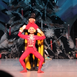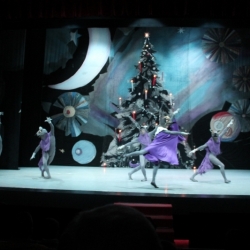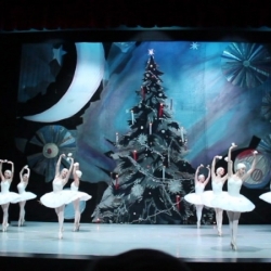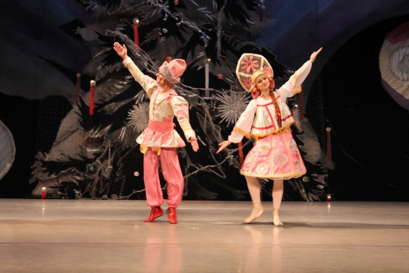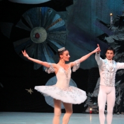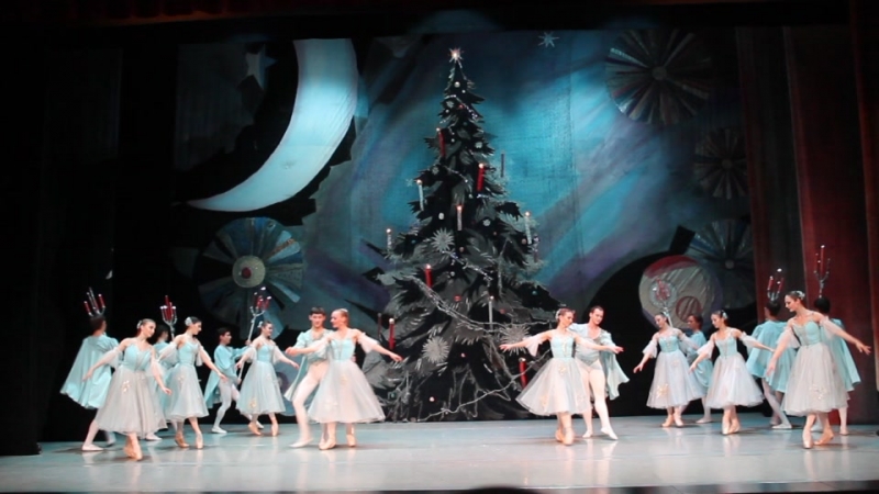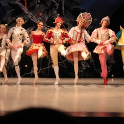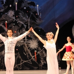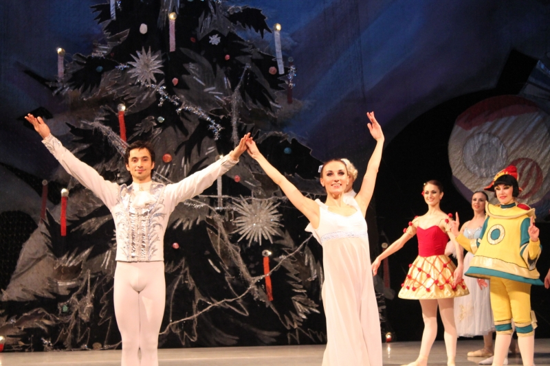 Siguiendo con la representación del día 25 de diciembre, sus responsables fueron Lurie Grigorovici, coreografía, Semión Virsalazde, diseñador y la Dirección Artística de Tamara Podareva, quienes con un escenario muy atractivo representando un gran árbol de Navidad, sirvió para desarrollar la historia de Marie con la bella música de Tchaikovsky (no hubo orquesta sino grabación) en 2 actos (130 minutos con descanso), con un movimiento de bailarines que no decayó en ningún momento y con una exhibición de los cuadros que componen este ballet, muy bien logrados.