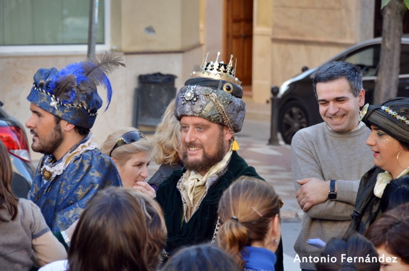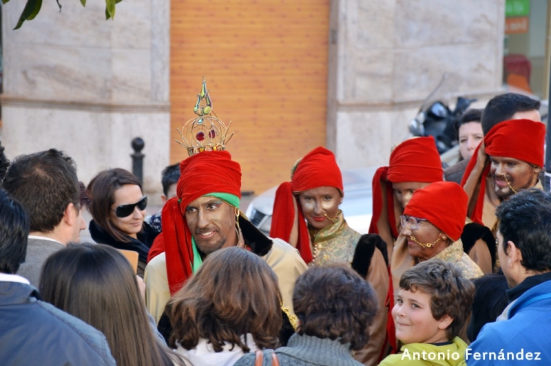 A su llegada a la Plaza de España y con la ya tradicional narración de la periodista egabrense Maria Eugenia Vilchez, sus Majestades ofrecieron Oro, Incienso y Mirra al Niño Jesús.
