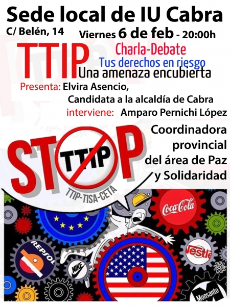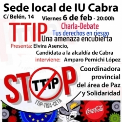 El acto ha tenido lugar el pasado viernes, en la sede de IU, en la calle Belén, sobre este acuerdo Transatlántico para el Comercio y la Inversión. Como indican los miembros de la formación en la nota de prensa que nos han remitido, se trata de "un tratado que lleva tiempo negociándose entre los Estados Unidos y la Unión Europea, totalmente en secreto por imposición de los EEUU, a espaldas del Parlamento Europeo y de nuestros representantes en él, y que amparándose en las palabras empleo e inversión, enmascaran medidas exclusivamente comerciales y no sociales que, de aprobarse, se situarán por encima de la soberanía y las leyes de los Estados miembros, tal y como ya está sucediendo en países en donde se han firmado acuerdos parecidos, como por ejemplo en Canadá o México".