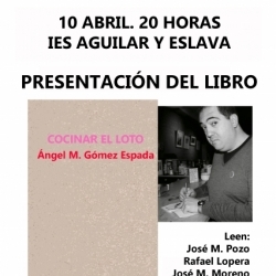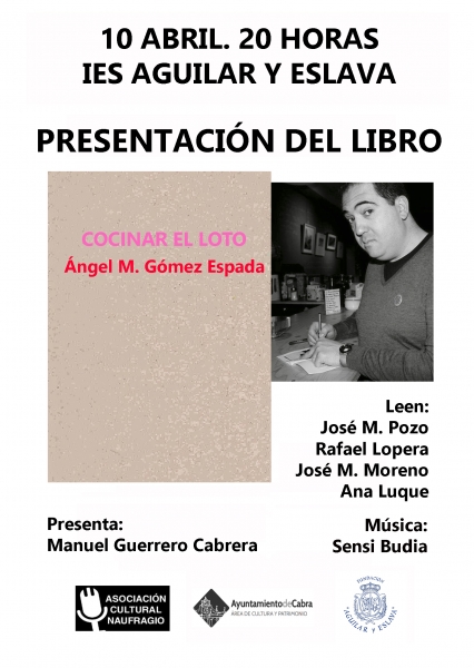 El acto será presentado por Manuel Guerrero Cabrera y contará con la participación en la lectura de Ana Luque, Rafael Lopera, José Manuel Moreno y José Manuel Pozo Herencia, además del autor.