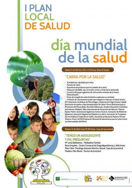 El próximo sábado 11 de Abril en la Plaza de España y sus alrededores desde las 11:00 a las 15:00 horas, se llevará a cabo una acción denominada "CABRA POR LA SALUD", en la que se englobarán diferentes actividades dirigidas a mostrar a la población los beneficios de adoptar hábitos saludables donde se incluirán actividades de ocio saludable para niños, una muestra de Taichi, se dispondrán expositores de productos para el cuidado de la Salud, un punto de recogida de aceite y se realizará un desayuno saludable con productos de nuestra tierra.