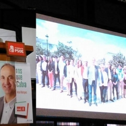 Por su parte, ya en la noche del sábado y en el Salón Carmen, el PSOE convocaba a sus seguidores para presentar la candidatura que encabeza Jesús Rodríguez Alcázar y que cierra la ex ministra de Cultura, Carmen Calvo Poyato. Los candidatos socialistas llevan como lema de campaña "Nos une Cabra".