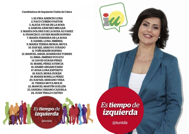 De esta forma, y con la presentación de la candidatura de Izquierda Unida para las elecciones municipales de Cabra, presentada el pasado sábado, ya se han conocido de manera oficial las cuatro formaciones que se van a presentar a las elecciones municipales de este mes de mayo de 2015 y que encabezan Fernando Priego, por el Partido Popular; José Luis Osuna, por el Partido Andalucista; Jesús Rodríguez, por el Partido Socialista Obrero Español y Elvira Asencio, por Izquierda Unida.