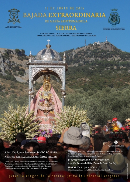 Afortunadamente y tras muchos años haciéndolo cada una por su cuenta, tanto la Archicofradía matriz como la Hermandad de San Rodrigo - Costaleros - han publicado un único cartel, lo que se agradece y pone de manifiesto la unión entre ambas cofradías. Por la mañana se pondrán autobuses entre las 12:30h y las 16:30h que saldrán desde la zona de Caño Gordo en dirección al Santuario, para facilitar la subida a cuántas personas quieran luego bajar andando con la Virgen.