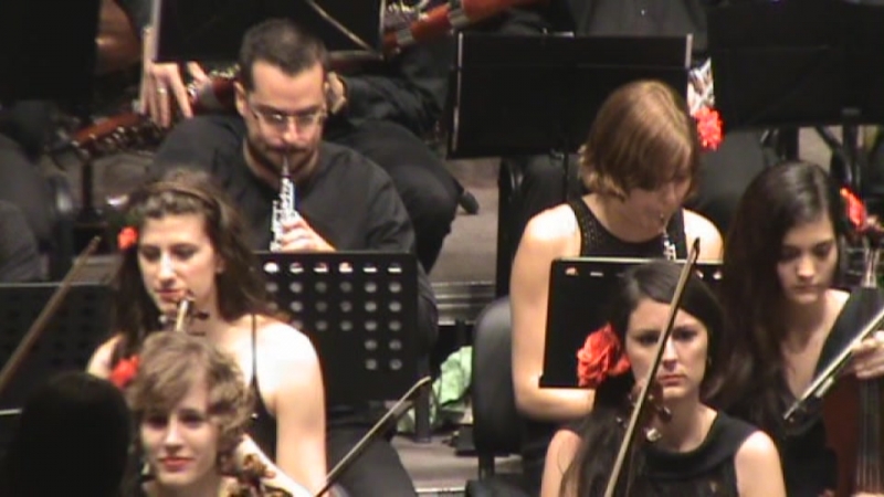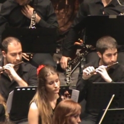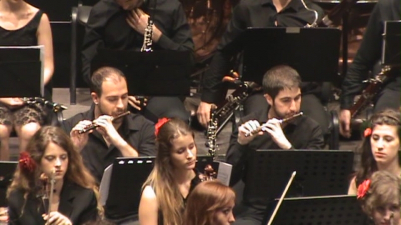 Después la orquesta al completo hizo un exuberante Mussorgsky con "Una noche en el Monte Pelado" que Juan Luis llevó muy seguro y se lucieron los distintos grupos de instrumentos como fagotes, clarinetes, flautas, los metales (trompetas, trombones, tubas) así como sus solistas, sin olvidar a la percusión muy ajustada y a tiempo. La cuerda, que representa el grueso de la orquesta, compacta y seguridad total.