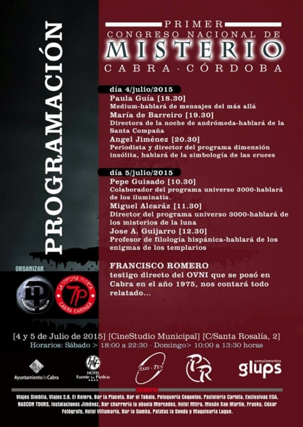 Se contará con la participación de Francisco Romero, testigo directo del OVNI que se avistó en Cabra en 1975 y que contará todo lo ocurrido en aquella ocasión.