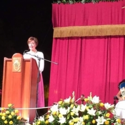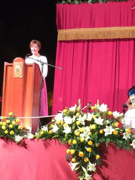 En el pregón, María Luisa Hurtado hizo un canto a la devoción que Cabra y muchos pueblos de Córdoba y otras provincias profesan a la Virgen de la Sierra. Comenzó con el recuerdo de la llegada de la Virgen a Córdoba y su entrada por el Puente Romano de la capital, mientras sonaban de fondo las coplas. Recorrió sus vivencias y emociones en torno a la devoción mariana, destacando en todo el pregón su fe y vivencia religiosa, que no escondió en ningún momento. Referencias a la herencia recibida de sus padres en el cariño a la Virgen de la Sierra, recorridos por diferentes lugares de nuestra ciudad, sentimientos y vivencias jalonaron un discurso muy centrado en la Virgen de la Sierra, con el motivo especial del Año Jubilar y que terminaba con una nana que la Madre de la Sierra ofrecía a todos sus hijos.