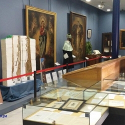 En la siguiente vitrina, de grandes dimensiones, está el tomo referido a Cabra del "Diccionario geográfico-estadístico-histórico de España y sus posesiones de Ultramar", llamado popularmente "Diccionario Madoz", obra de consulta para historiadores, investigadores y arqueólogos. Se trata de una magna publicación compuesta por 16 volúmenes editada en Madrid durante los años 1845-1850. En este diccionario se habla de que "lo más notable del término es el célebre pozo o Sima de Cabra, que tanto llamó la atención de Cervantes y otros sabios". Más adelante da cuenta del reconocimiento que se hizo de ella en el año 1841 "por un profesor de matemáticas y otras personas del colegio", de cuya visita nos ocuparemos en otro de nuestros artículos.