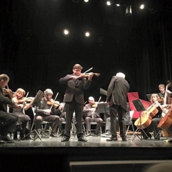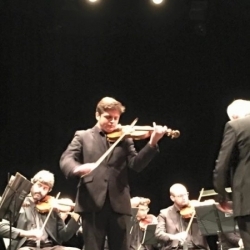 El Concierto en MI MAYOR para violín y orquesta vino después y hubo de solista el concertino de la orquesta, José Mª Fernández Benítez. La orquesta deliciosa y el solista inmejorable, qué decir de él. Muchísimas palmas.
