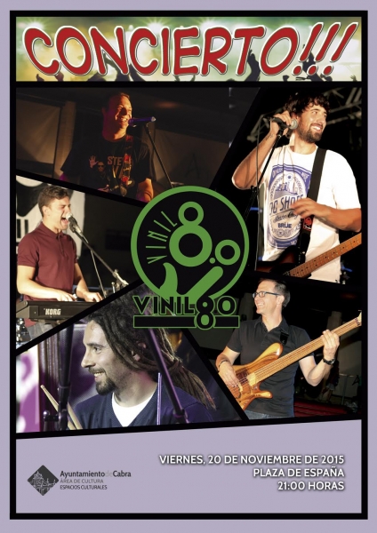 El viernes 20 la delegación municipal de Espacios Culturales ha organizado en la Plaza de España a las 21:00h un concierto del grupo Vinilo 8.0.