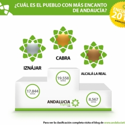 Desde la web de Andalucía Típica, que ha organizado esta encuesta, podemos leer que "después de algunas semanas de intensas votaciones por fin tenemos ganador. Con 19558 votos el pueblo con más encanto de Andalucía 2016 es Cabra". En segundo lugar ha quedado con 17.844 votos, Iznájar. Y en tercero con 8.567 votos, Alcalá la Real.