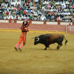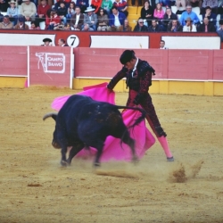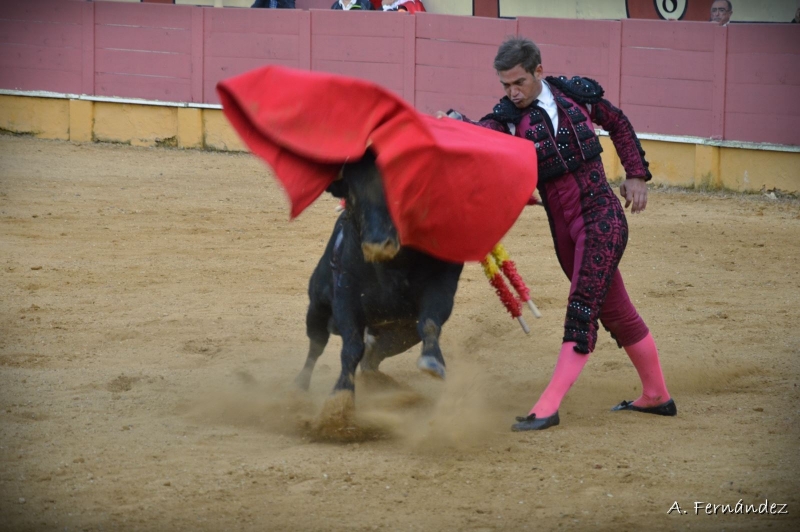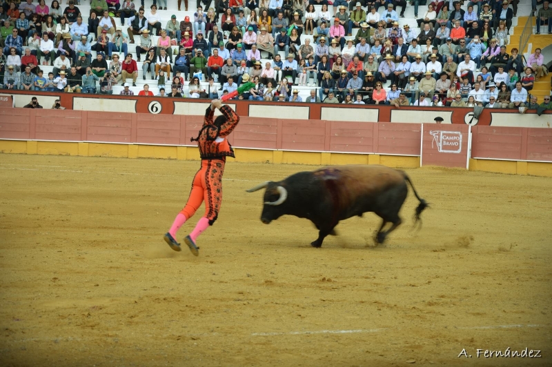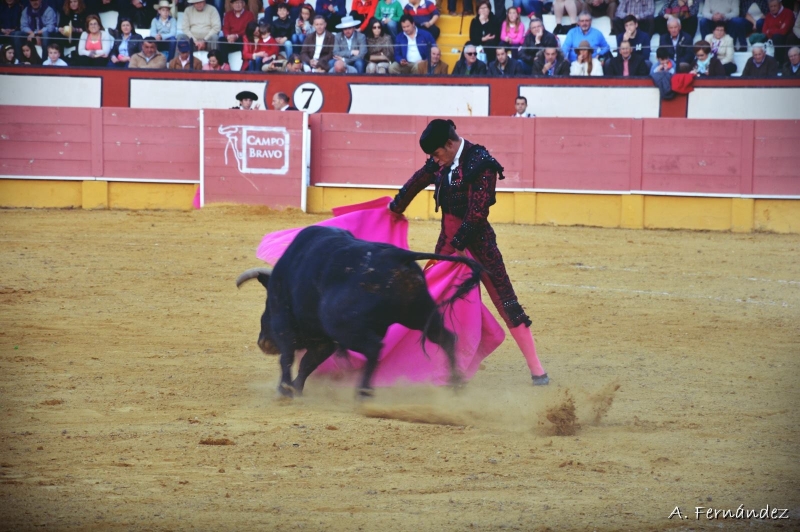 Faena de muleta. Algo protestón por el pitón izquierdo, haciendo caso omiso a los cites del Fandi. Por el pitón derecho ha tenido mayor transmisión, deslumbrando el final de los pases cabeceando en contadas ocasiones. La faena ha ido de más a menos.