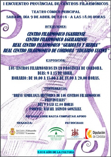 CONFERENCIA: "BREVE SEMBLANZA HISTÓRICA DE LOS CENTROS FILARMÓNICOS PROVINCIALES", a cargo de Rafael Asencio González.