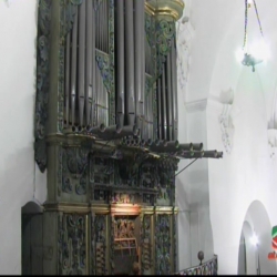 "Obra de octavo tono alto; Ensalada" (Sebastián Aguilera de Heredia). El órgano siguió sonando con sonido precioso, ritmo y buenos trinos o coloraturas (como en las arias de óperas) en pasajes muy bellos. También la grandiosidad de las trompetas y un diálogo entre el órgano Mayor y el Positivo.