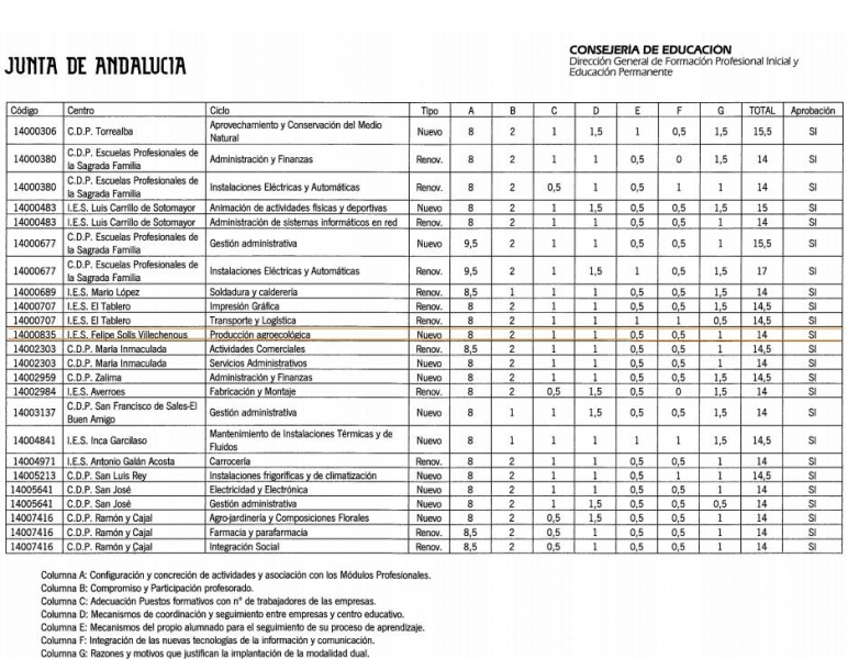 Este tipo de formación profesional comenzó a impartirse en Andalucía de manera experimental en el curso 2013/2014 con 41 proyectos. En el actual curso académico cuenta ya con 127, en los que participan centros e institutos de Córdoba capital, Baena, Bujalance, Fuente Palmera, Montoro y Montilla, a los que se sumará en el próximo curso este título que se impartirá en Cabra. Actualmente son más de 1500 personas las que están participando como alumnado de estos estudios en Andalucía.
