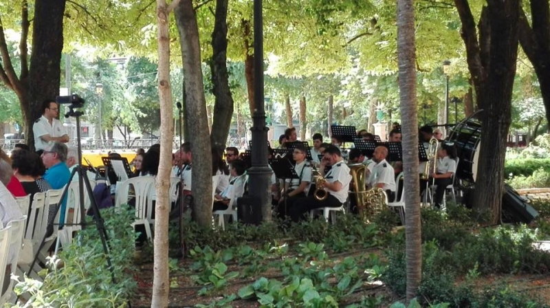 Buen concierto de la Banda Sinfónica de Cabra, bajo la frondosidad de los árboles del centenario Paseo.