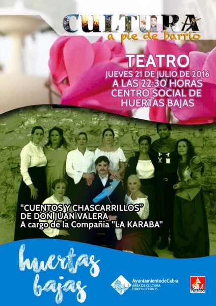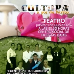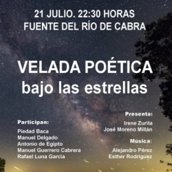 El jueves 21, en la Casa de la Cultura - Biblioteca central Juan Soca -, a las siete y media de la tarde se presenta el libro Separados por el destino, de Daniel Ruiz Ávila. Y también esa misma noches, el programa "Cultura a pie de Barrio" lleva la representación de Cuentos y chascarrillos andaluces, de Valera, a Huertas Bajas, con representación a cargo de la Compañía La Karaba. Será a las 22:30h. También a esa hora, pero en la Fuente del Río, la propuesta es disfrutar de una noche de Poesía bajo las estrellas, con recital a cargo del colectivo cultural Naufragio, con música y poesía en un entorno natural privilegiado.