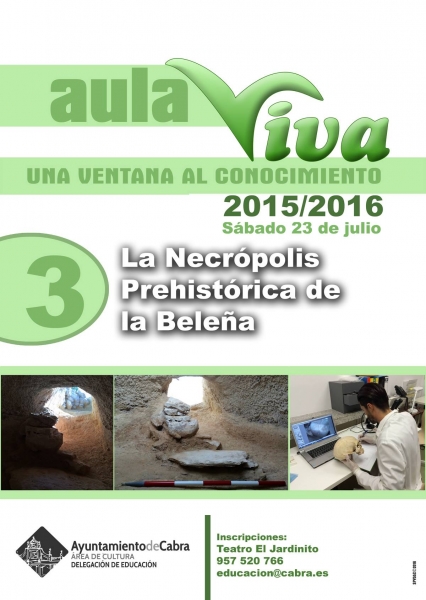 El sábado 23 una nueva cita con Aula Viva: una ventana al conocimiento. En esta ocasión se hará un recorrido por las excavaciones arqueológicas de la cueva La Beleña, una interesantísima necrópolis prehistórica que está siendo objeto de una nueva campaña de excavaciones y estudio en estos días. Con esta visita se pone fin a Aula Viva en el presente curso 2015-2016.